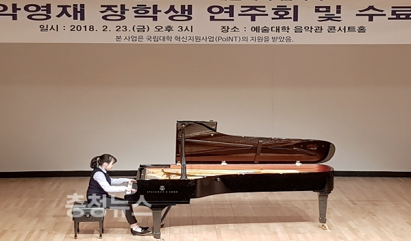 충남대 예술대학 음악과는 지난 23일 음악관 콘서트홀에서 ‘제1회 음악영재 장학생 연주회 및 수료식’을 개최했다.