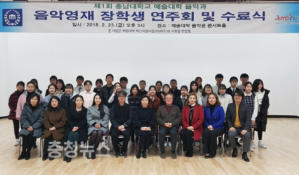 음악영재 장학생 지원사업은 지난해 10월부터 2월까지 충남대의 국립대학혁신지원사업(PoINT)의 일환으로 대전지역 중학생 39명을 대상으로 5개월간 진행한 음악영재 장학생 교육 프로그램이다.