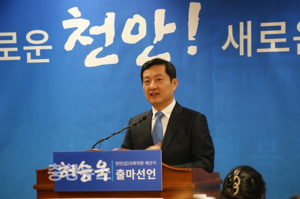허승욱(더불어민주당) 전 충남도 정무부지사가 26일 오전 천안시청 브리핑실에서 오는 6.13전국지방선거와 함께 치러지는 충남 천안시 ‘갑’ 지역구 국회의원 재선거 출마를 선언했다.