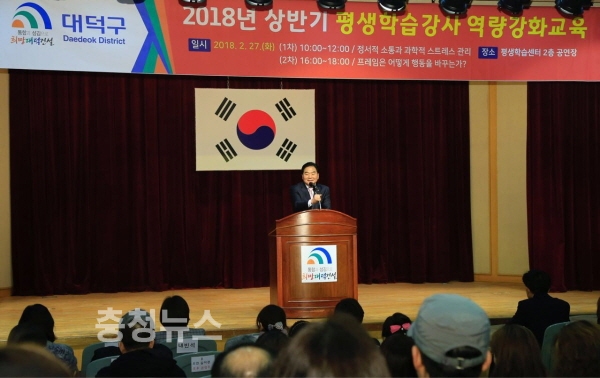 이날 교육에 앞서 박수범 대덕구청장은 “지난해 새롭게 시작된 배달강좌제가 평생학습 대표 브랜드로써 도약하는 뜻깊은 자리로 주민들이 학습으로 더욱 더 행복해지길 바란다”며