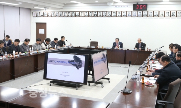 충남 보령시는 28일 시청 중회의실에서 김동일 시장과 전문가 등 20명이 참석한 가운데 보령 해삼 지역특화 발전 특구지정 연구용역 중간보고회를 가졌다.