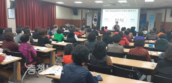 이날 여성 농업인 역량 강화 교육은 행복한 인생 창조원 조성용 대표의 ‘청양군 여성농업인의 꼴값을 하자’는 강연으로 진행됐다.