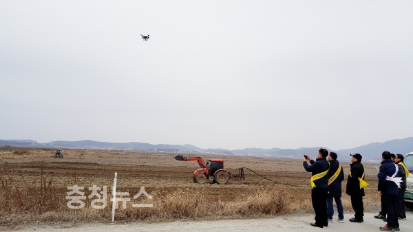 충남 서산시가 지난 27일 한국농어촌공사 천수만사업단의 드론을 활용해 서산A지구 간척지내 농경지에서 액비 불법 살포에 대한 특별 지도점검을 했다.