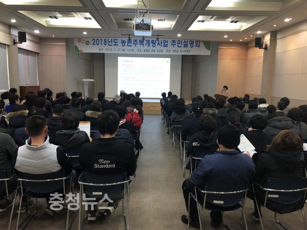 충남 서천군(군수 노박래)은 지난 27일 문예의전당 소강당에서 사업대상자와 한국국토정보공사, 농협 등 유관기관 관계자가 참석한 가운데 ‘2018년 농촌주택개량사업 주민설명회’를 개최했다.