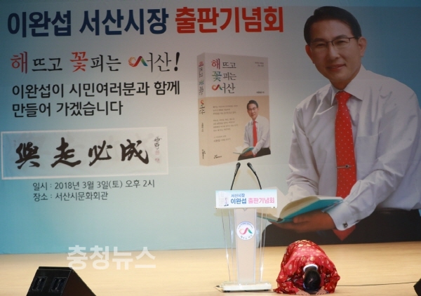 이완섭 서산시장은 3일 서산시문화회관 대공연장에서‘해뜨고 꽃피는 서산’출판기념회를 열고 6.13 지방선거 3선 도전의지를 다시 한 번 강력하게 피력했다.