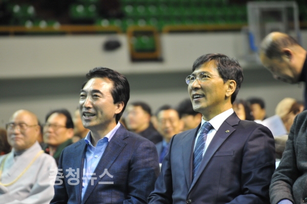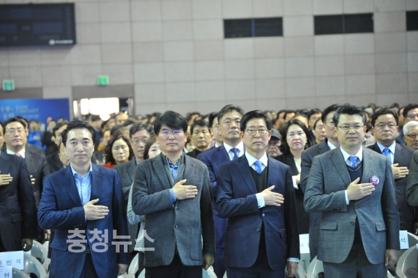 구본영 천안시장, 이춘희 세종시장, 김지철 충남교육감, 조치연, 이공휘, 오배근, 홍재표 도의원 등이 참석한 모습