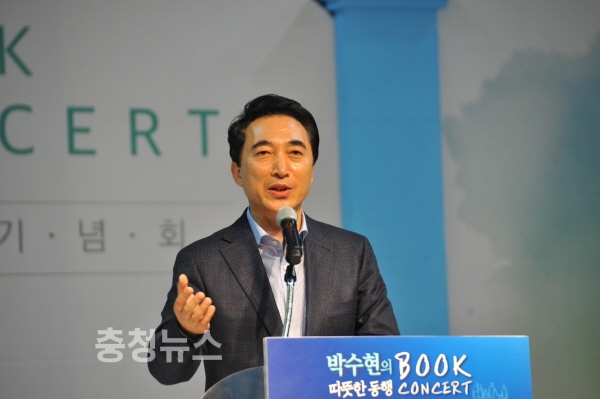 더불어민주당 박수현 충남도지사 예비후보가 3일 단국대 체육관에서 ‘박수현의 따뜻한 동행’ 북 콘서트를 열고 안심(安心)잡기에 나섰다.