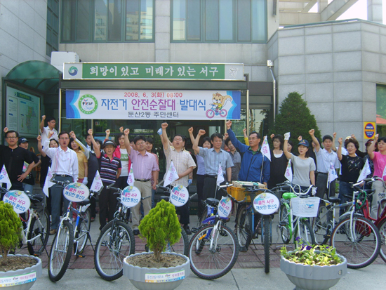 대전광역시 서구 둔산2동 주민센터(동장 조월환)에서는 깨끗하고 살기좋은 마을을 만들기 위해 공무원과 주민, 자생단체 회원 등 30명으로 구성된 ‘자전거 안전순찰대’ 발대식을 3일 가졌다.