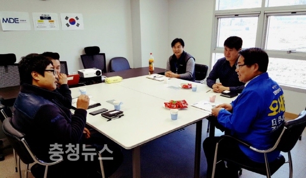 오세현 예비후보는 한국여성경제인협회 충남지회 박오순 초대회장, 강희수 부회장 등 지역 여성경제인들과 간담회를 가진 데 이어, 아산시 음봉면에 소재한 ㈜엠디이(반도체 및 LCD 전자제어시스템 개발)를 찾아 임직원들을 격려하고 현장 애로사항을 청취했다. 또한 아산시기업인협의회 사무실을 방문, 홍원유 회장과 면담을 갖는 등 지역경제 현안을 챙기는 행보를 이어갔다.
