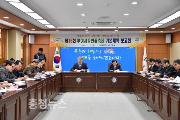충남 부여군은 지난 5일, 제16회 부여서동연꽃축제의 성공적 개최와 문화체육관광부 최우수 축제로 품격을 높이기 위해 이용우 부여군수를 비롯한 관련부서장과 팀장 등 40명이 참석한 가운데 서동연꽃축제 기본계획 보고회를 가졌다.