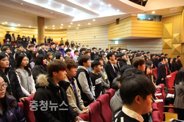 이번 입학식에는 총 168명으로 학부 146명, 대학원 석사과정 2명, 박사과정 3명, 금강어학원 17명을 대표해 김연수(글로벌융합학부), 신현지(글로벌융합학부) 학생이 지성인으로서 새 출발을 다짐하는 입학선서를 했다.