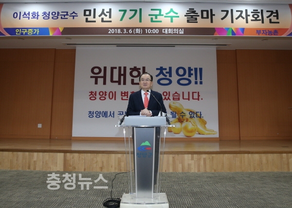 이석화 청양군수가 오는 6.13 지방선거에서 3선에 도전하겠다고 선언했다.