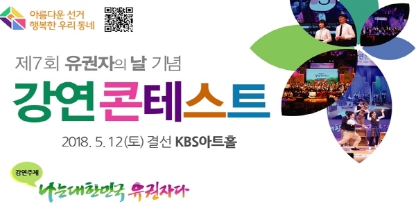중앙선거관리위원회 선거연수원은 5월 12일 KBS 아트홀에서 제7회 유권자의 날 기념 '강연 콘테스트'를 개최한다.