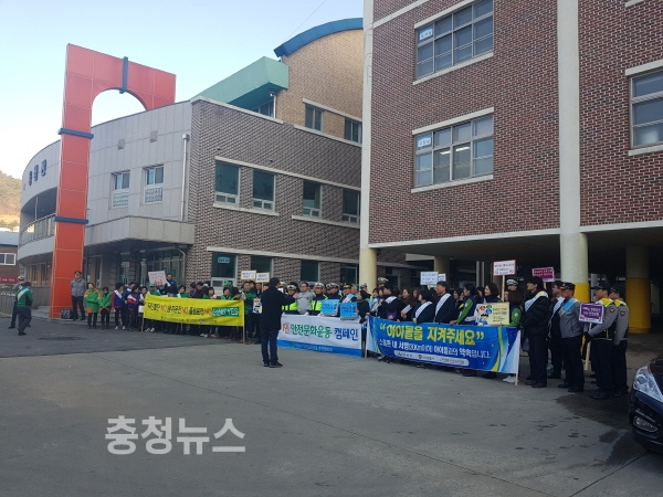 캠페인은 아산시와 아산교육지원청, 아산경찰서, 아산용화초, 아산시 지역자율방재단, 아산시 녹색어머니연합회, 바르게살기운동 아산시협의회, 아산시 모범운전자회, 아산시새마을회, 안전교육강사협의회, 아산시현장관찰단, 아산시 안문협 등 기관ㆍ단체에서 100여 명이 참여했다.