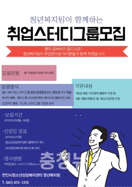 취업스터디그룹지원은 취업준비생 및 대학생의 취업능력개발을 위한 스터디를 지원하는 사업으로 16일까지 참여그룹을 모집하며 참가자는 스터디활동비와 스터디공간 등을 지원받을 수 있다.