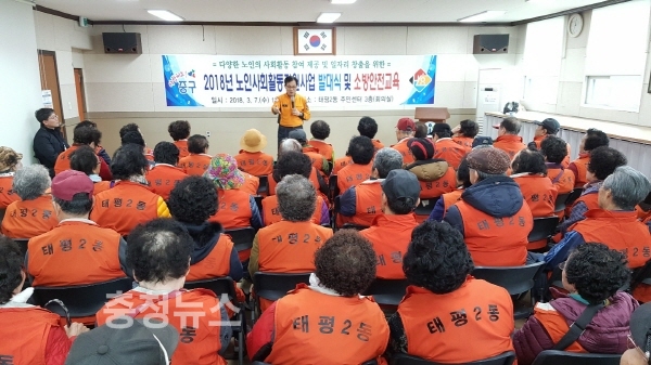 대전 중구 태평2동 주민센터(동장 최상훈)는 7일 주민센터 3층 회의실에서 노인 일자리참여자 76명을 대상으로 생활안전교육을 실시했다.
