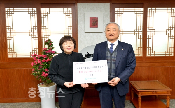 7일 2020년 정년퇴임을 앞둔 백석대학교 보건실 노명희 직원은 대학발전을 위한 기부금 2천만 원을 기탁했다.