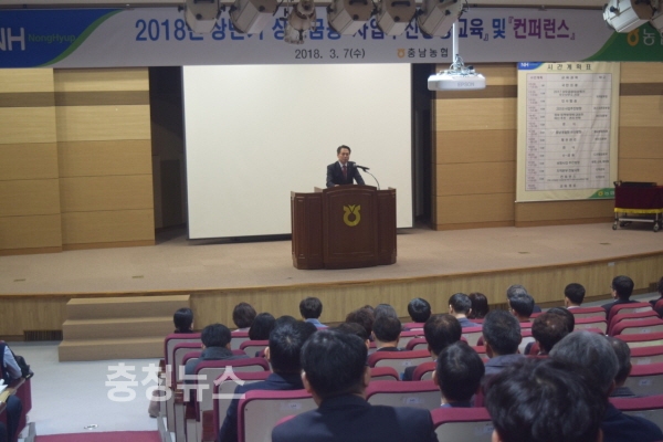 농협 충남지역본부(본부장 조소행)은 7일 세종시 장군면 소재 세종교육원에서 충남지역 농·축협 신용상무와 지점장 등 300여명을 대상으로 '2018년 상반기 상호금융 사업추진방향 및 컨퍼런스' 를 실시했다.