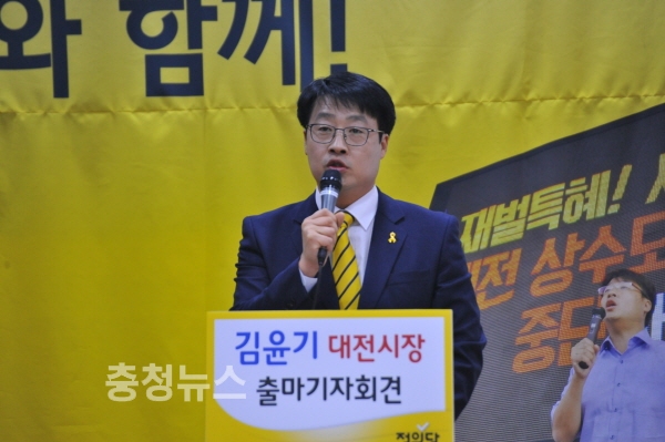 김윤기 정의당 대전시당위원장이 7일 6·13 지방선거 대전시장 출마를 공식 선언했다.