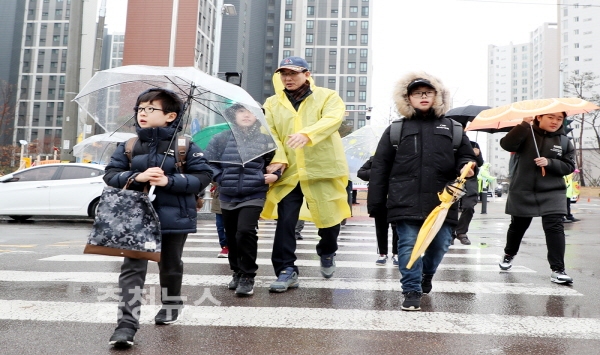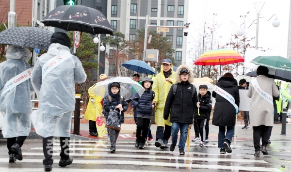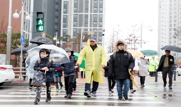 이날 참가자들은 등교 중인 학생과 학부모를 대상으로 주정차 위반 차량 이동조치, 교통신호 준수, 스쿨존 내 주정차 위반, 과속금지, 보행자 배려 등을 홍보했다.