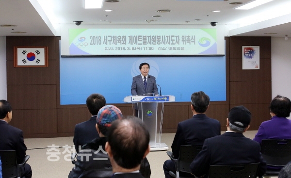 대전 서구(구청장 장종태)는 8일 구청 대회의실에서 게이트볼 자원봉사 지도자를 위촉하고, ‘무료 게이트볼 교실’을 본격 운영한다고 밝혔다.