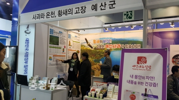 또한 홍보 부스를 통해 평창올림픽에 납품한 예산사과 등 예산의 10경 8미를 알리고 향토기업의 특산품을 함께 전시해 예산군 알리기에 힘썼다.