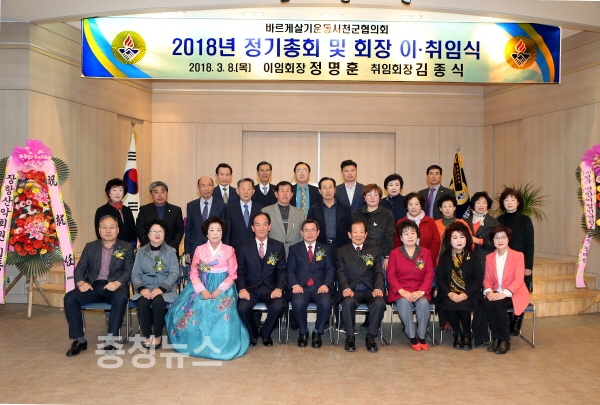 이날 정명훈 회장과 이정은 여성회장이 회장직을 이임하고 김종식 회장과 하금숙 여성회장이 새롭게 취임했다.