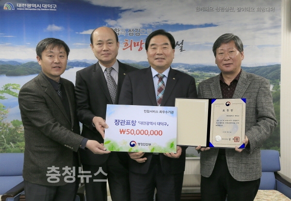 대전 대덕구(구청장 박수범)가 지난 8일 정부서울청사 별관 대강당에서 열린 2017년도 민원서비스 종합평가 결과 시상식에서 행정안전부장관상을 수상했다.