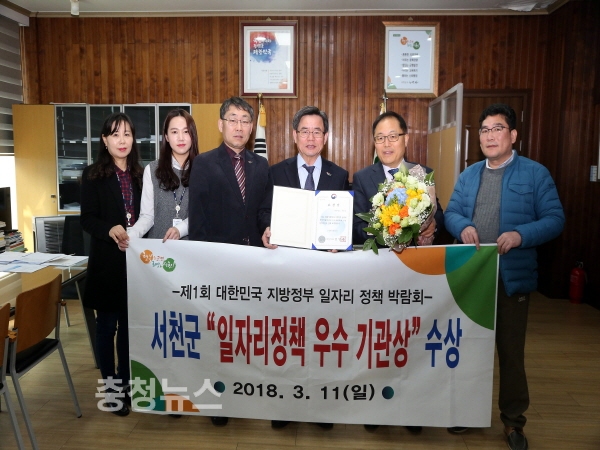 충남 서천군(군수 노박래)이 지난 8일부터 11일까지 일산 킨텍스에서 열린 ‘제1회 대한민국 지방정부 일자리정책 박람회’에서 일자리정책 우수기관에 선정돼 해양수산부장관상을 수상하는 영예를 안았다.