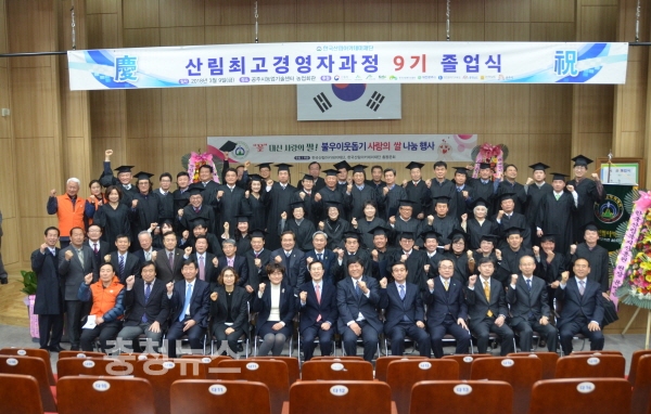 한국산림아카데미(원장 안진찬)은 산림최고경영자(CEO)과정 제9기 졸업식 및 제10기 입학식을 지난 9일 공주시농업기술센터 농업회관 대강당에서 가졌다.