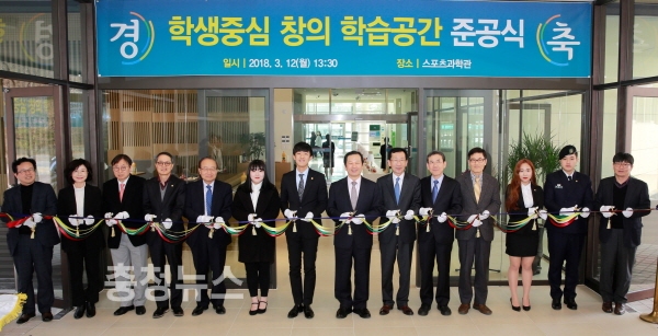 선문대는 12일 오후 1시 산학협력관 1층과 스포츠과학관 1층에서 황선조 총장, 이재영 부총장, 구자문 부총장, 권희태 부총장, 박정훈 총학생회장을 비롯해 교직원, 학생 등 100여 명이 참석한 가운데 ‘학생중심 창의 학습공간’ 리모델링 준공식을 개최했다.