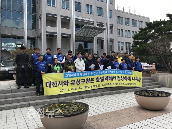 이날 시민대책위는 "지난 2월 출범 기자회견을 통해 호텔 폐업으로 유성지역 경제에 미칠 우려스러운 상황에 대비해 유성구청의 적극 개입을 요구한 바 있으나 별다른 노력을 확인하지 못했다"고 말했다.