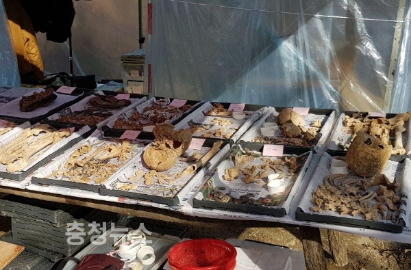 시굴 발굴 결과 배방읍 중리 일원에서 150~300구 정도의 민간인 희생자가 매장된 것으로 나타났으며, M1 탄피와 불에 타 검게 그을린 유해(치아 및 두개골 파편)와 유물(돌반지, 은비녀 등)이 발견되었다.