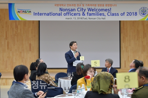 충남 논산시(시장 황명선)는 지난 13일 회의실에서 국방대학교 안보과정에 재학 중인 외국군 장교 및 가족을 초청, 상호협력을 위한 간담회를 개최했다.