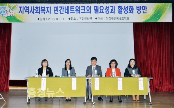 이날 토론자로 나선 손영혜 실행위원장(유성구행복네트워크)은 “지역사회보장협의체, 유성구자원봉사센터, 유성구만두레, 유성구행복네트워크의 협력과 함께 민간역량강화가 중요하다”고 강조했다.