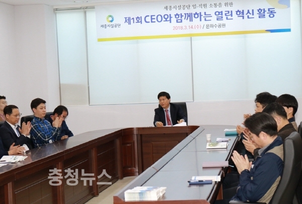 세종시설공단(이사장 신인섭)은 14일(수) 은하수공원 대회의실에서 ‘CEO가 함께하는 열린 혁신활동’을 진행했다.