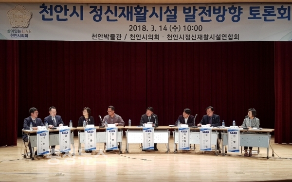 천안시의회(의장 전종한)는 14일 천안박물관에서 천안시정신재활시설연합회와 공동으로 「천안시 정신재활시설 발전방향 토론회」를 개최했다.
