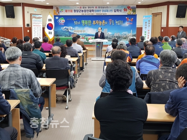 제11기 청양군농업인대학(학장 이석화)이 양봉심화반과 양념채소반 2개 과정으로 각각 총 20회 100시간의 학사일정을 시작했다.