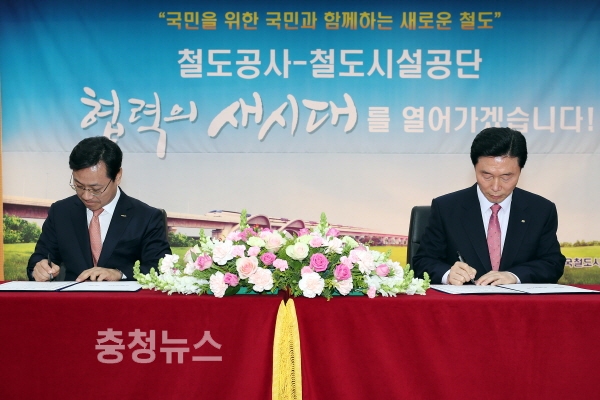 한국철도공사(사장 오영식)와 한국철도시설공단(이사장 김상균)은 15일 철도공동사옥(대전시 동구 소재)에서 한국 철도산업 발전을 위한 상호 협력체계 구축을 주요 내용으로 하는 양해각서(MOU)를 체결했다고 밝혔다.