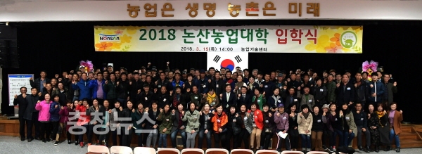 충남 논산시(시장 황명선)는 지난 15일 논산시농업기술센터 대강당에서 입학생을 비롯해 내빈, 가족 등 200여명이 참석한 가운데 논산농업대학 입학식을 개최했다.