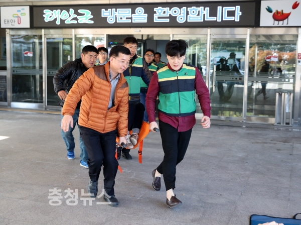 이날 훈련에서는 특히 화재 취약계층 이용 시설인 장애인시설(태안군장애인복지관)과 아동복지시설(태양어린이집), 요양병원(태안요양병원) 등지에서 시범훈련이 실시되며,