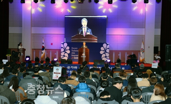 충남도립대 개교20주년 기념식(청양대학)남궁영 도지사 권한대행 축사 모습