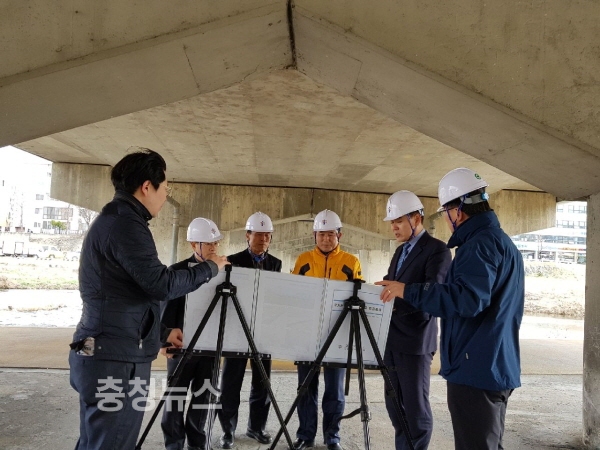 점검에 나선 박용갑 청장은 공사장과 교량의 안전관리 상태와 시설물의 상태․균열 등 구조안정성 실태를 점검하고 현장 시설물 안전관리를 당부했다.
