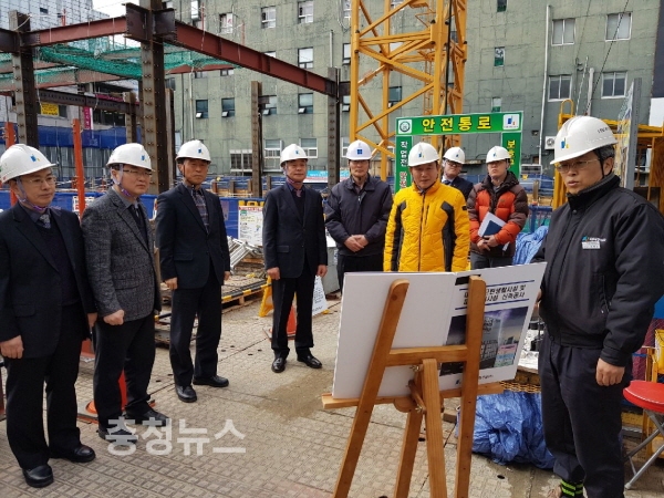 대흥동 공사현장은 지하 2층 지상 9층의 연면적 1만 2천㎡의 규모 건물에 상가와 영화관이 입점하는 건물 신축 공사로 원도심 상권의 활성화에 크게 기여할 것으로 기대를 모으고 있다.
