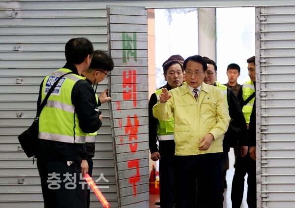 특히 한현택 청장은 복합터미널 관계자들과 함께 직접 건물 내부를 순차적으로 이동하며 방화셔터 작동 시연, 자위소방대의 훈련 대피 안내 등을 참관하며 훈련현장을 직접 점검했다.
