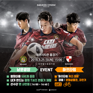 감격적인 첫 승에 성공한 대전시티즌이 25일 오후 3시 대전월드컵경기장에서 부산아이파크와 ‘KEB 하나은행 K리그2 2018’ 4라운드 홈경기를 갖는다.