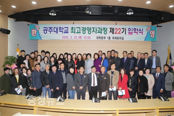 공주대학교(총장직무대리 김희수) 경영행정대학원은 22일 국제회의실에서 제22기 최고경영자과정 입학식 행사를 가졌다고 밝혔다.