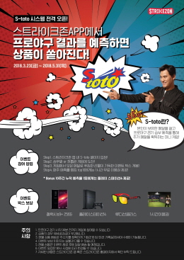 스크린야구 브랜드 스트라이크존을 운영하는 ㈜뉴딘콘텐츠(대표이사 김효겸)는 자사어플리케이션(이하 어플)내 프로야구 예측 게임인 ‘S-toto’ 오픈을 기념해 이벤트를 진행한다.