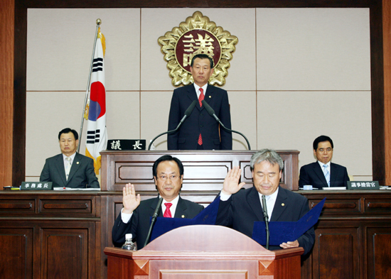 이날 회의에서는 지난 6.4 보궐선거에서 당선된 전인석(공주1, 자유선진당)의원과 박종근(부여1, 자유선진당)의원의 선서식이 있었으며 농수산경제위원회 위원과 19명의 예산결산특별위원을 선임했다.