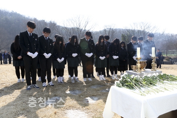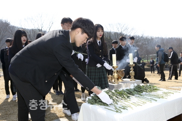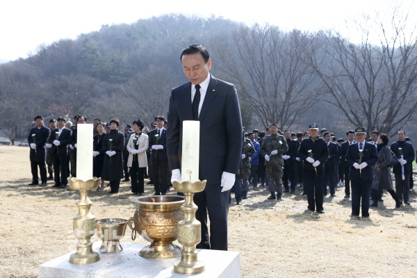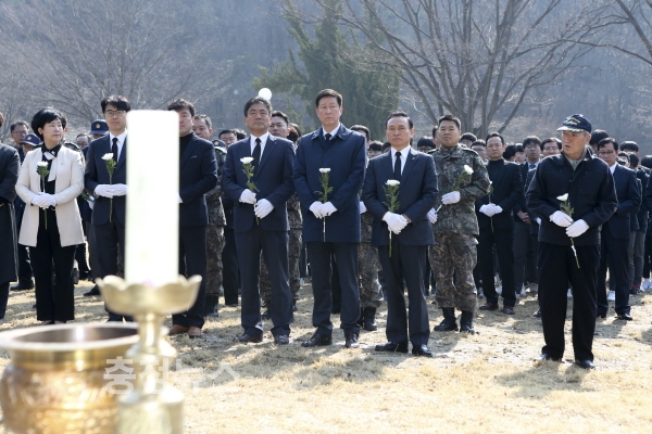 추모비 참배는 구본영 시장과 4급 이상 간부공무원, 시민, 20여 개 기관의 단체장 등 150여 명이 참여한 가운데 천안함 46명에 대한 헌화, 묵념, 분향 순서로 진행됐으며 숭고한 애국 용사들의 충절을 기렸다.